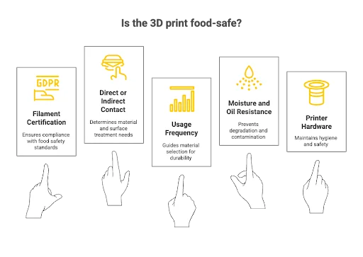 But using the right material is only the first step. Food safety depends on what you print, how you print it, and what happens after the print is done. Even the smoothest-looking part can trap bacteria if the wrong nozzle or finishing method is used.