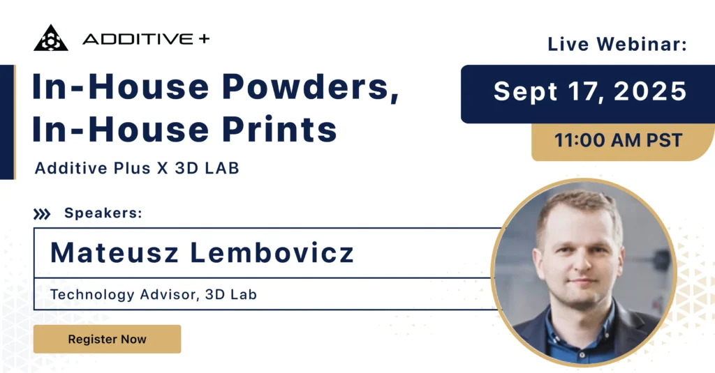 On September 17 at 11:00 AM PST, join Additive Plus and 3D LAB for a live webinar built for engineers and manufacturers ready to take control of their metal additive workflows, no warehouse, no million-dollar system required.