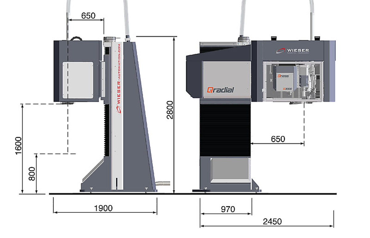 - Machine dimensions (LxBxH) 2500 x 1900 x 2800 mm