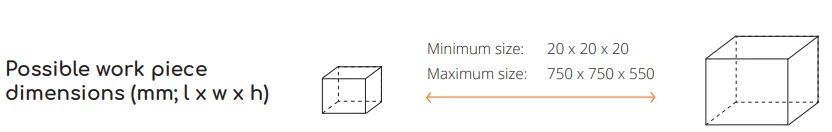 • Dimensions of the processing space 750 x 750 x 550 mm, 29.5 x 29.5 x 21.7 in