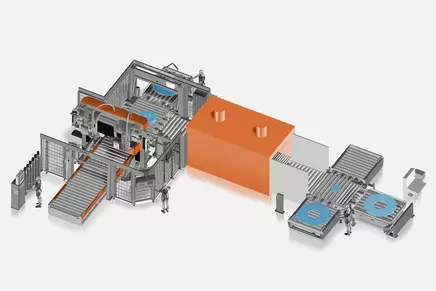 For consumables and high volume, hardness testing acc. to Vickers and Rockwell, automatic feeding and removing via portal