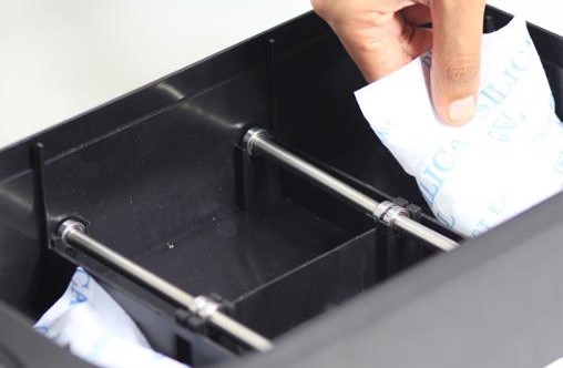 Do not expose the desiccant sachets to the air for too long. We highly recommend silica gel for the type of desiccant.
