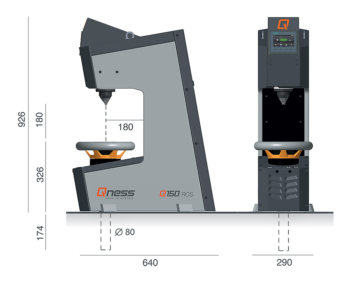 - Test force area Qness 150 RCS: 150 kg (1471.5 N) Qness 60 RCS: 62.5 kg (613.1 N)