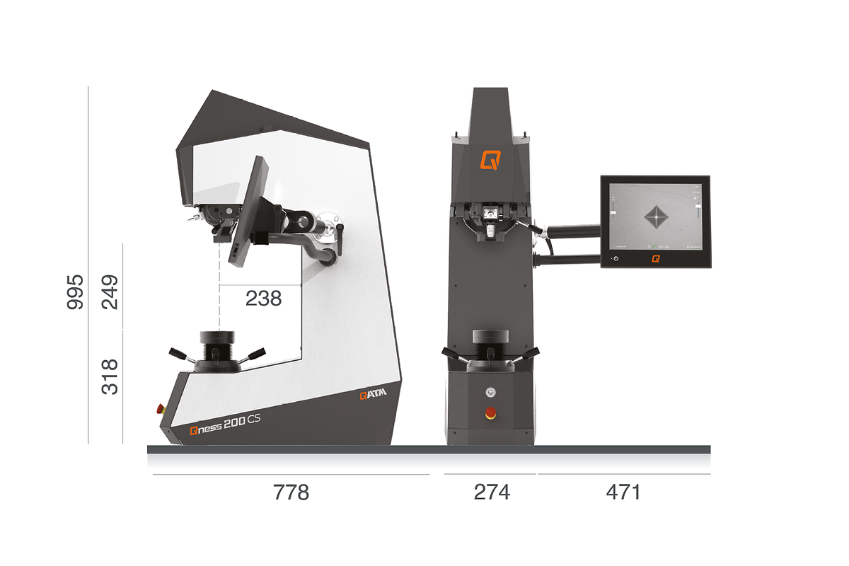 - Additional optioins QATM designer pedestal, collision protection, cross laser, test anvils,prisms, data connections, barcode/QR code reader etc.