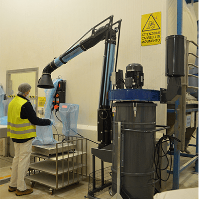 It is possible to clean the filter using an integrated mechanical system. An external lever shakes the filter vertically and enables cleaning the filter thoroughly and safely, maintaining constant suction performance and preventing any dispersion of dust in the environment.