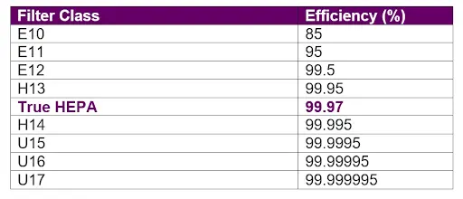 Filtration Efficiency | 99.97% @ 0.3 microns | 99.999% @ 0.1–0.3 microns |